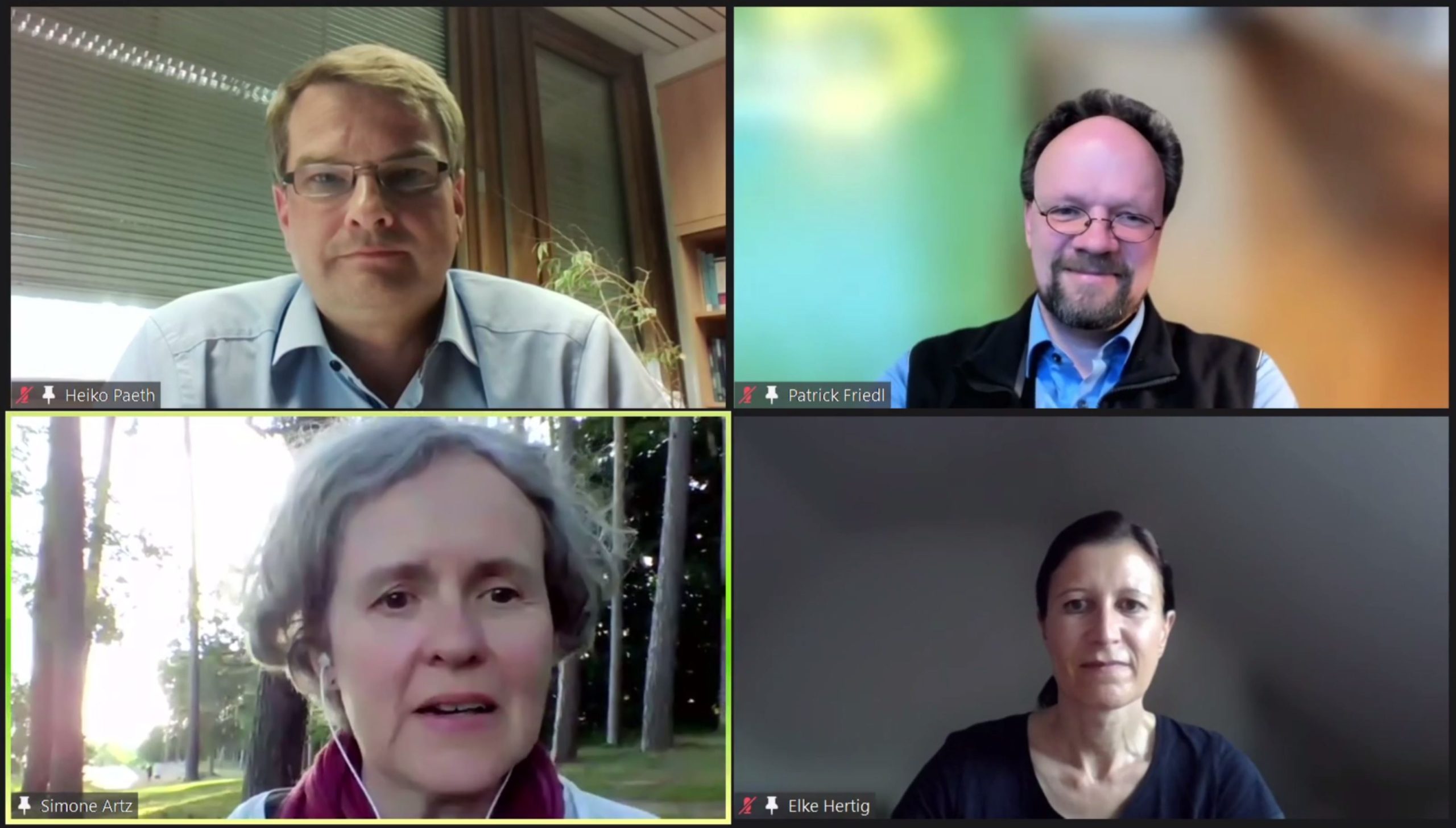 Im Bild von links oben nach rechts unten: Prof. Dr. Heiko Paeth, MdL Patrick Friedl, Dr. Simone Artz und Prof. Dr. Elke Hertig