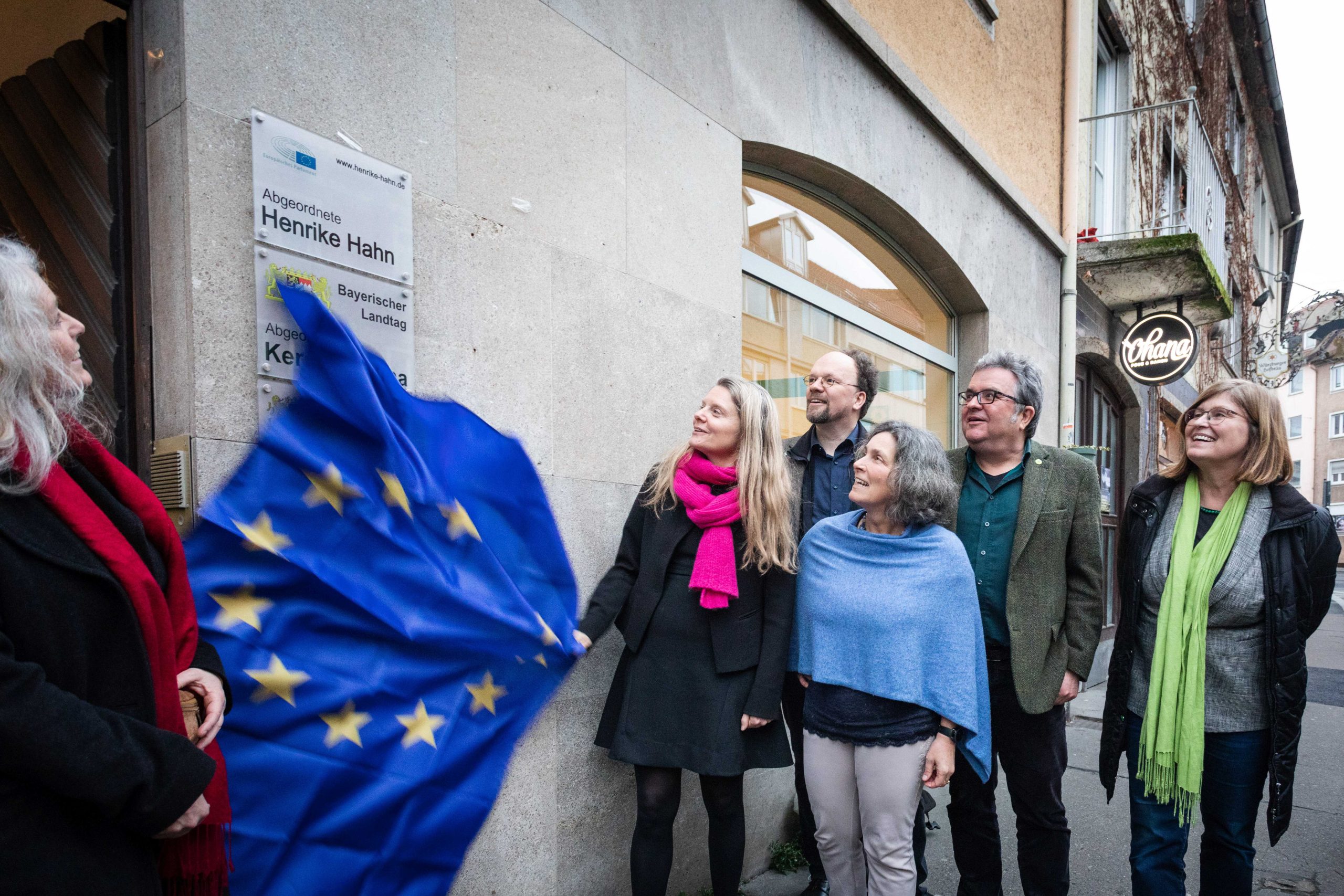 Ein weiteres Stück Europa in Würzburg 17 März 2023 Im Bild von links: Christina Feiler - Bezirksrätin, Henrike Hahn - MdEP, Patrick Friedl - MdL, Kerstin Celina - MdL, Gerhard Müller - Bezirksrat und Karen Heußner - Stellv. Landrätin. Foto: Patty Varasano MdEP Henrike Hahn weiht Ihr Europabüro bei den MdL Kerstin Celina und Patrick Friedl ein Am 23. Februar 2023 feierte die Europaabgeordnete Henrike Hahn mit über 100 Gästen ihre Büroeinweihung im Verbund mit den Landtagsbüros der Landtagsabgeordneten Kerstin Celina und Patrick Friedl. Damit wird die Europastadt Würzburg im „Grünen Haus“ in der Textorstraße 14 „ergänzt durch die Europaebene“, so MdL Kerstin Celina in ihrer Begrüßungsrede. Das damit die verschiedenen politischen Ebenen näher zusammenrücken, sei ganz großartig für die Vernetzung, stellt die Bezirksrätin Christina Feiler fest. Auch die anderen Bezirksrät*innen Klara May und Gerhard Müller sowie die Kreisrätin und Kreisvorsitzende Jessica Hecht freuen sich über „ein weiteres Stück Europa in Würzburg“. Mit dem Einzug der Münchnerin werde der europäische Gedanke noch mehr in der Region Würzburg verankert, so Stadträtin und Kreisvorsitzende Simone Artz. Zur feierlichen Einweihung kamen viele Gäste aus Unterfranken. Unter ihnen Parteimitglieder und Interessierte, sowie Vertreter*innen verschiedener Ämter. Darunter die Bürgermeister Sommerhausens, Thüngersheims und Unterpleichfelds, Vertreter*innen der Agentur für Arbeit, die Gleichstellungsbeauftragte der Stadt Würzburg und zahlreiche Vertreter*innen aus dem sozialen Bereich, wie der Jugendseelsorge, der Teilhabeberatung, des Ärztebundes, des Familienbundes der Katholiken. der Telefonseelsorge und des Evangelischen Beratungszentrums. Der Kulturbereich der Region war stark vertreten mit Mitgliedern des Berufsverbands Bildender Künstler*innen und dem Intendanten des Mainfranken Theaters. Auch Akteur*innen, die für ein neues Zentrum für Angewandte Klimaforschung in Würzburg (WueZAK) eintreten, waren anwesend, so Vertreter des Landesanstalt für Weinbau und Gartenbau (LWG), des Kunststoff-Zentrums (SKZ) und der Stiftung Umweltenergierecht. Ganz zur Freude von MdL Patrick Friedl, Sprecher für Klimaanpassung der Grünen-Landtagsfraktion, der nach Begrüßungsworten auch warnende Worte vor den auf die Region Würzburg zukommenden Probleme fand. „Wenn wir so weiter machen wie bisher, steuert Unterfranken durch seine besondere geografische Lage auf mehr als 3 Grad Klimaerhitzung bis Mitte des Jahrhunderts zu.“ Über die „so vielfältige Gästeliste“ freute sich MdEP Henrike Hahn und sie sorgte für regen Austausch sowie zahlreiche interessante Gespräche. Genau dieser Gedankenaustausch, egal ob in Form von Anrufen, E-Mails oder Nachrichten, sei ihr besonders wichtig, um zu wissen „was vor Ort gebraucht wird“ betont die Europaabgeordnete. Musikalisch begleitet wurde der Abend von der Jazzsängerin Carolina Attoumani Diaz. Neben verschiedensten kleinen Leckereien wurde auch ein Europakuchen gereicht, der nach der offiziellen Begrüßung feierlich angeschnitten wurde. Die „rundum gelungene Einweihung“ (Patrick Friedl) war geprägt vom herzlichen Verhältnis der nun drei Abgeordneten in der Textorstraße 14. Es wunderte Niemanden, dass von einer „Liebesheirat im Büro“ (Kerstin Celina) gesprochen wurde, was Henrike Hahn erwiderte.