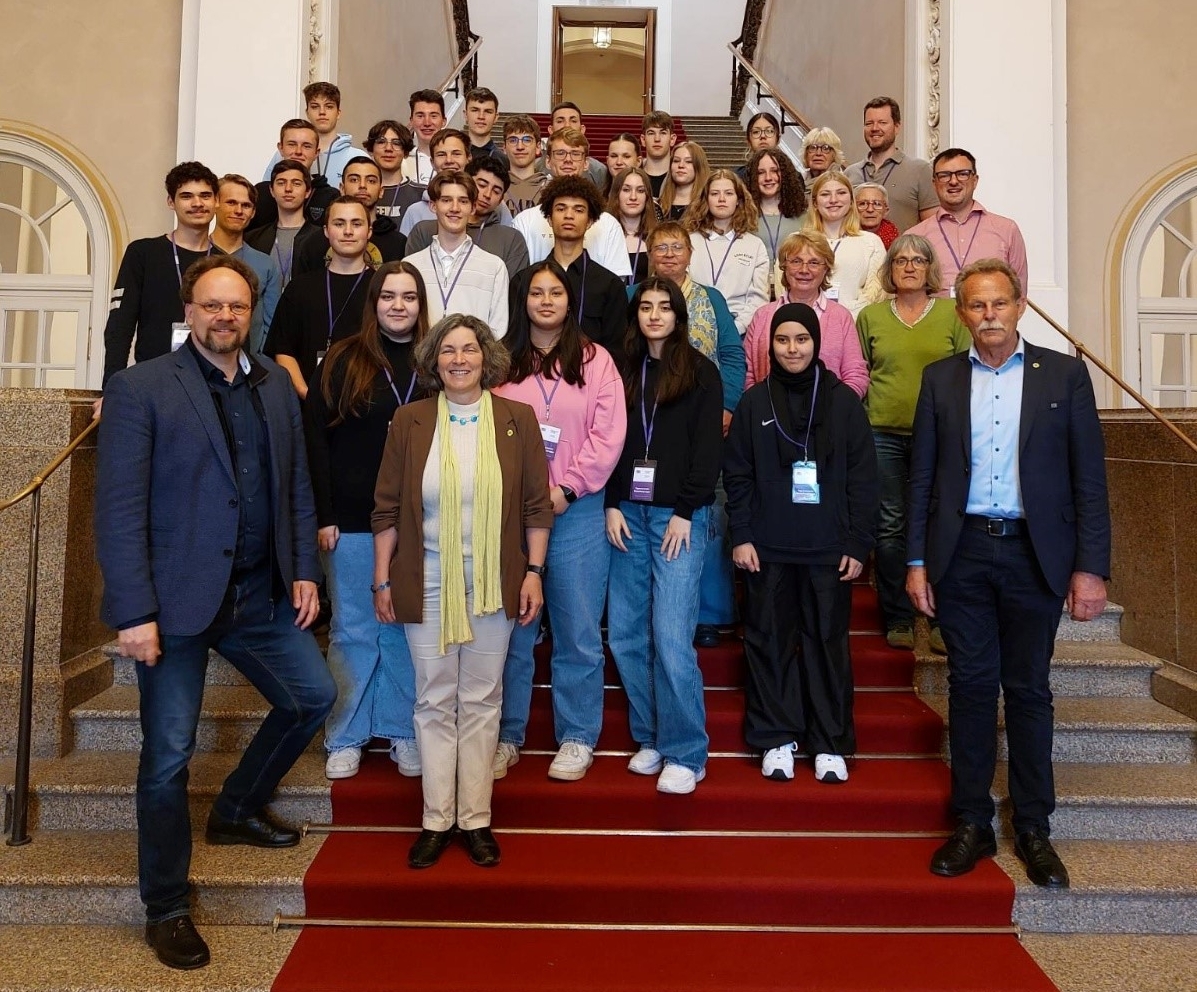 Schülerinnen und Schüler des Hermann-Staudinger-Gymnasiums Erlenbach am Main und weitere Interessierte aus Unterfranken nahmen die Einladung des Würzburger Abgeordneten Patrick Friedl (Bündnis 90/Die Grünen) in den Bayerischen Landtag an und verbrachten einen gemeinsamen Tag im Maximilianeum in München.